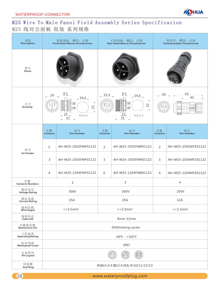 厂家M25 2芯螺丝锁线CE UL认证防水连器下一个产品 :