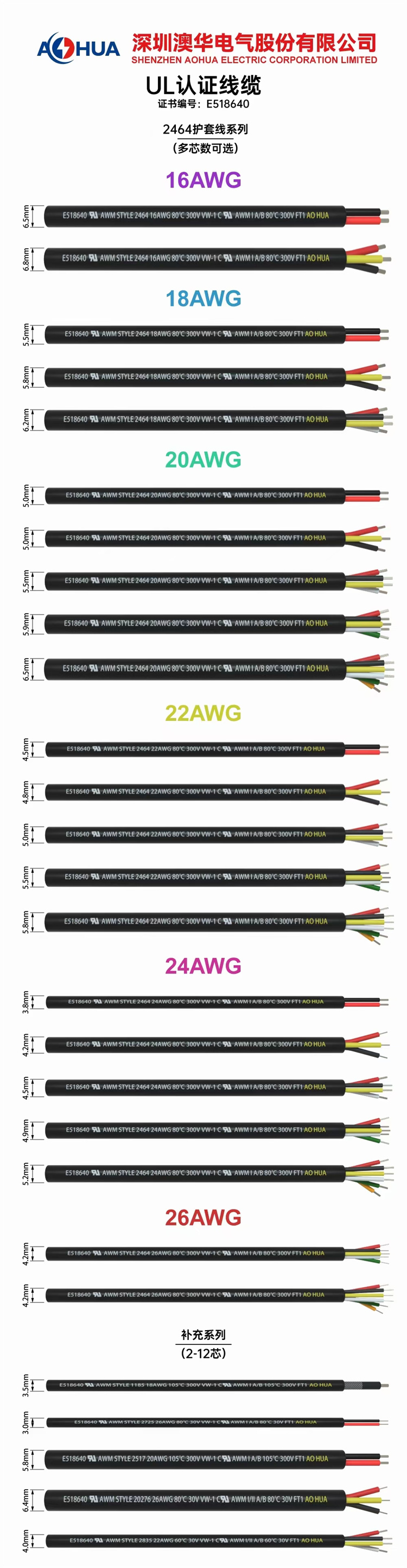 UL2464美标26/24/22/20AWG护套线2/3/4/5芯下一个产品 :