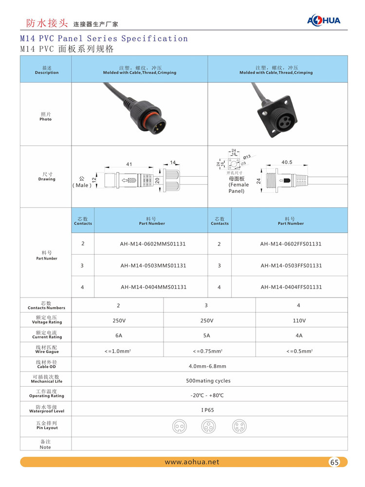 M14方形面板防水插头
