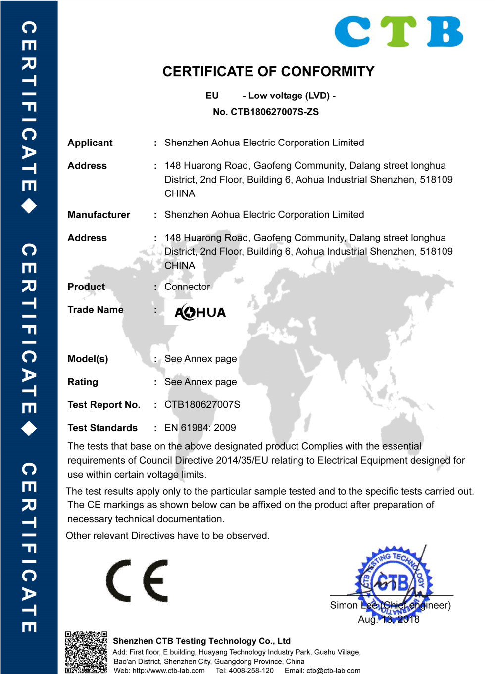 CE认证-澳华防水插头