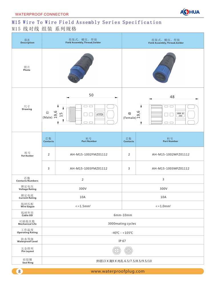 M15防水插头/标准接口/UL认证可选