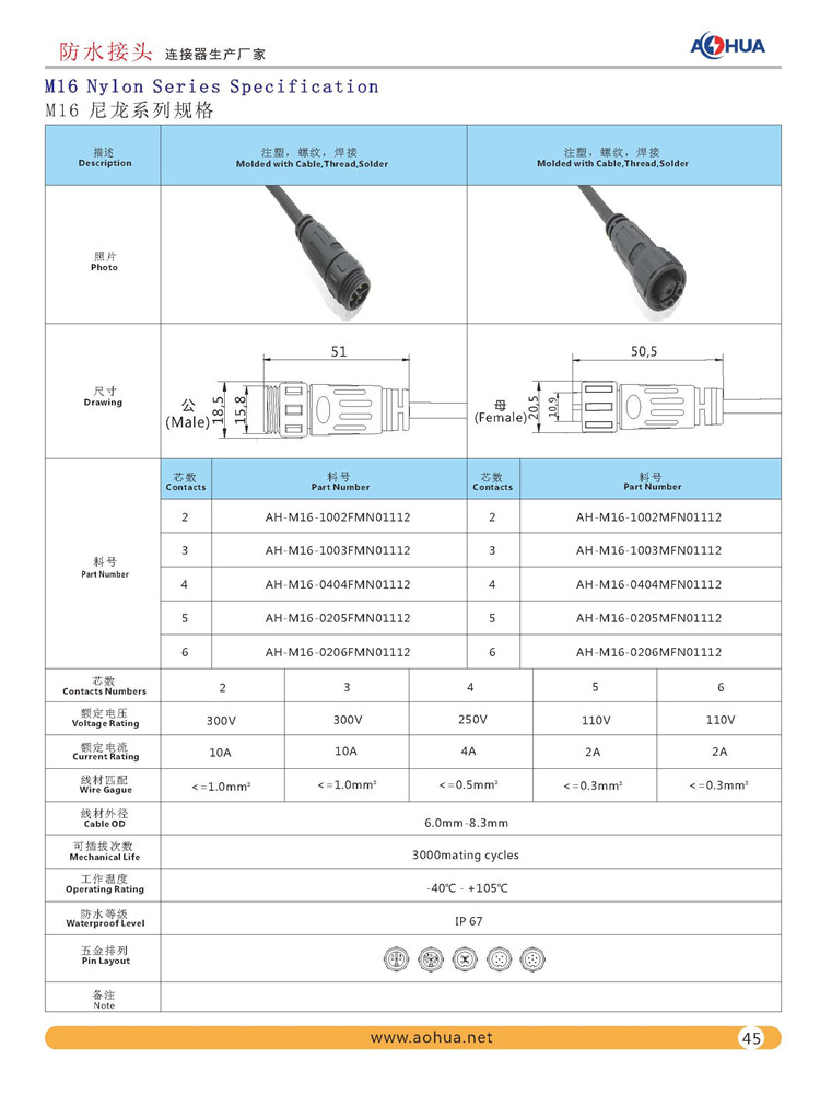 M16高性能工程塑料防水防尘连接线